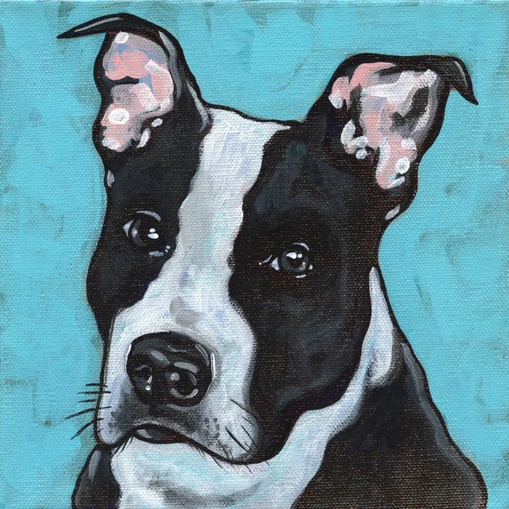 Most pet portraits are painted on a square canvas with acrylic paint & a lot of love.